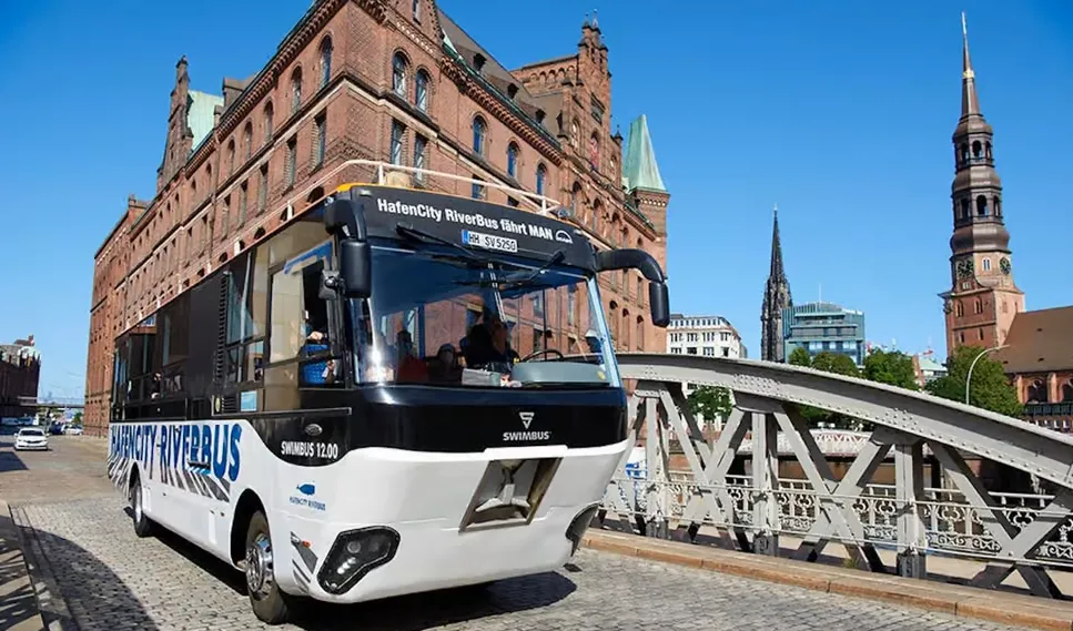 One of Hamburg’s most unique experiences is a ride on the amphibious bus – a special vehicle that travels both on land and in the water.